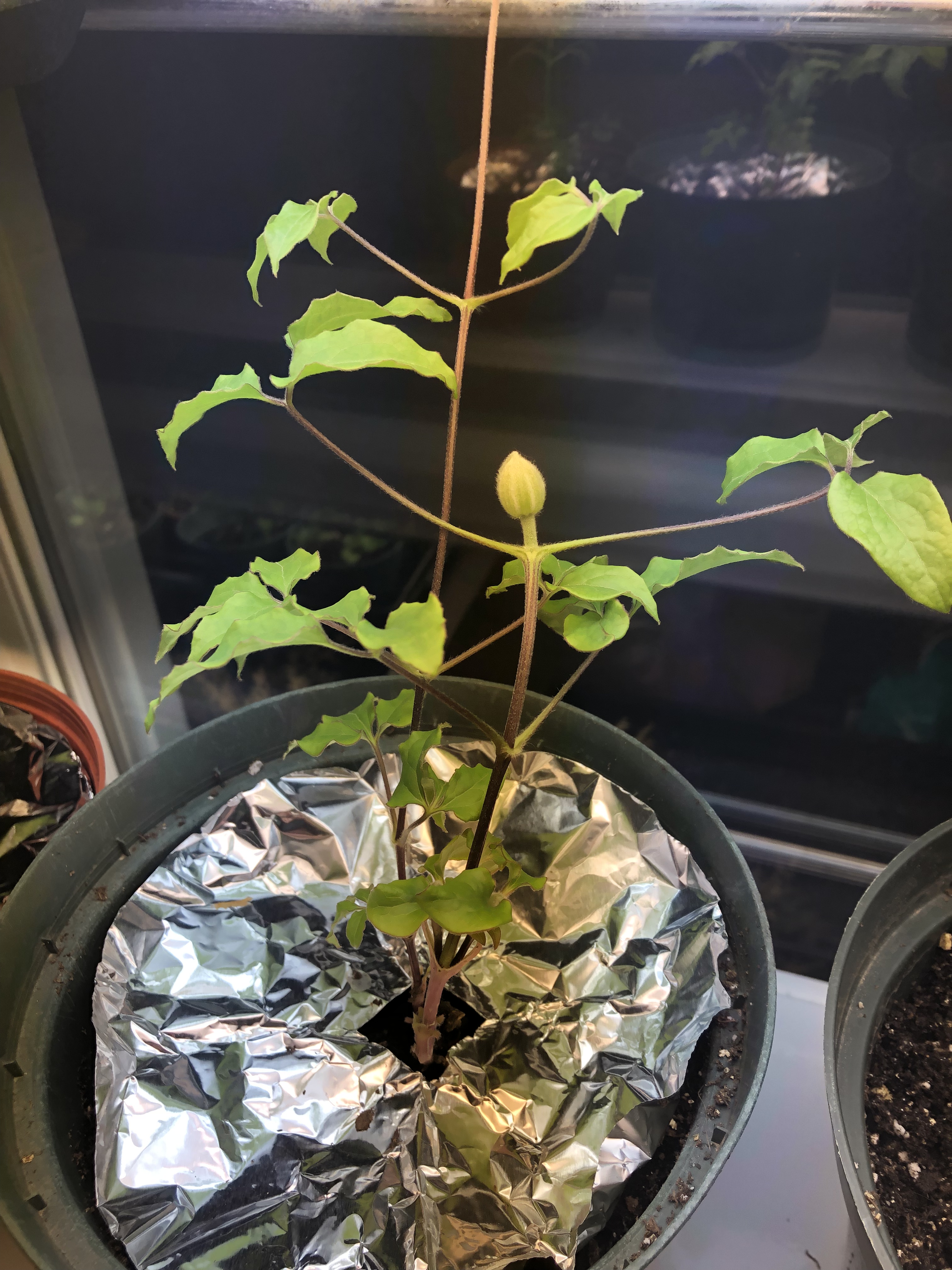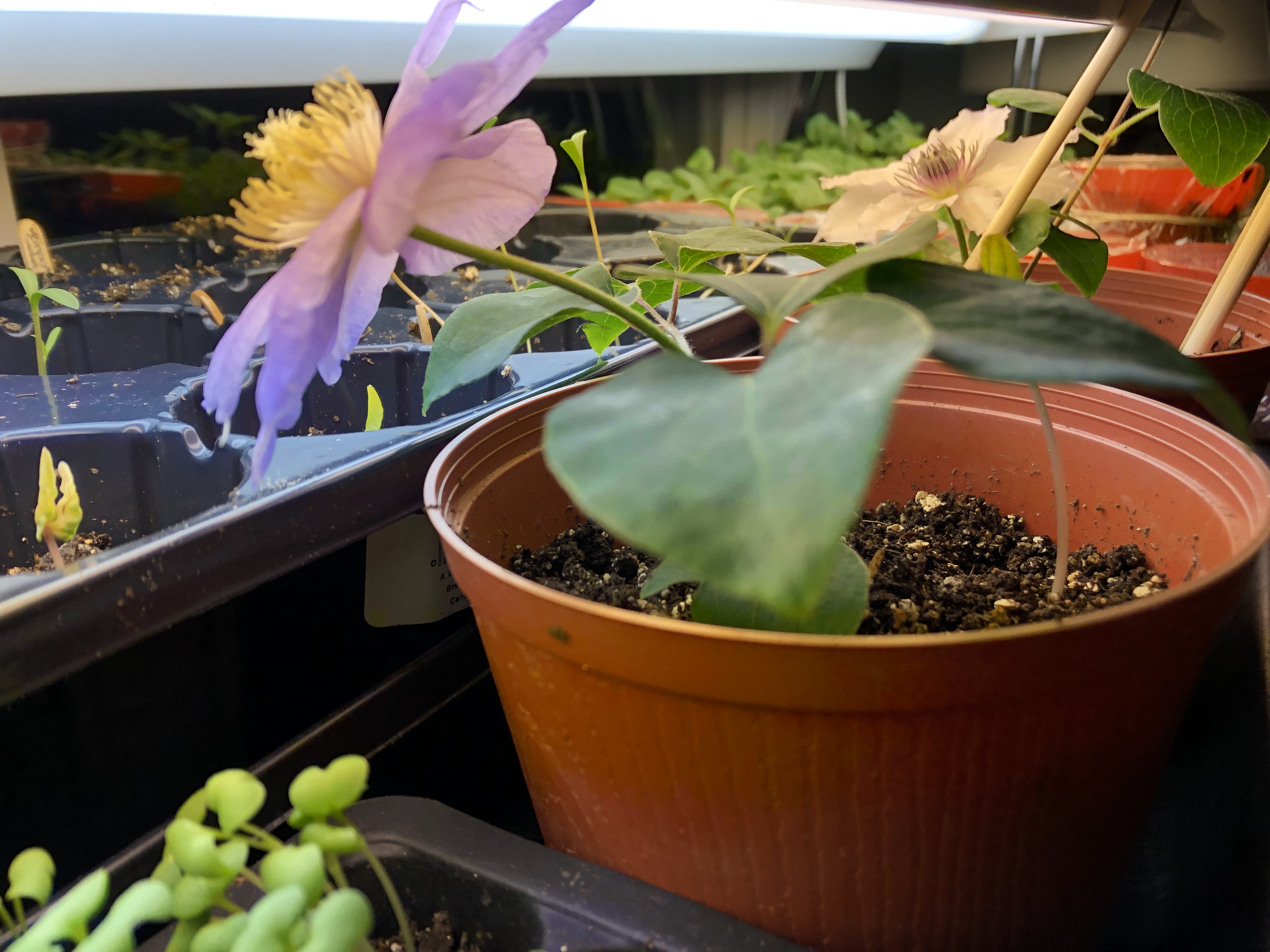 I bought a sack of clematis roots from a big box store and then panicked, washed and planted them when I opened the bag to find each one covered in mould. I’ve been googling tips for pretending they’re indoor plants, hoping I haven’t doomed them by potting up so early. The Internet says it depends on what type of clematis they are, and so far here is what we know: the front label said “assorted” and had various purple and white blooms pictured while inside the sac the mouldiest one was in a pot with a tag that said “yellow” and the rest were just fuzzy roots in a pile of dirt. Well look at them now, bigboxstore. I should have just returned the bag.